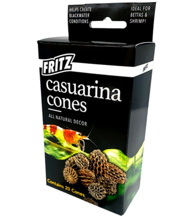 Fritz Casuarina Cones gives a unique application of tannins, humic acid, and habitat. Casuarina cones provide tannins, lower pH, have anti-fungal and anti-bacterial properties, enhance coloration and increase spawning behavior. The tannins released from these pieces create a more natural environment for Bettas, shrimp and other fish. Casuraina cones contain humic acids and tannins which are known to have antibacterial properties, naturally lower pH and create blackwater conditions in the aquarium. Fritz Casuarina Cones are suitable for all soft-water fish including betta, discus, tetras, angelfish, and killifish.